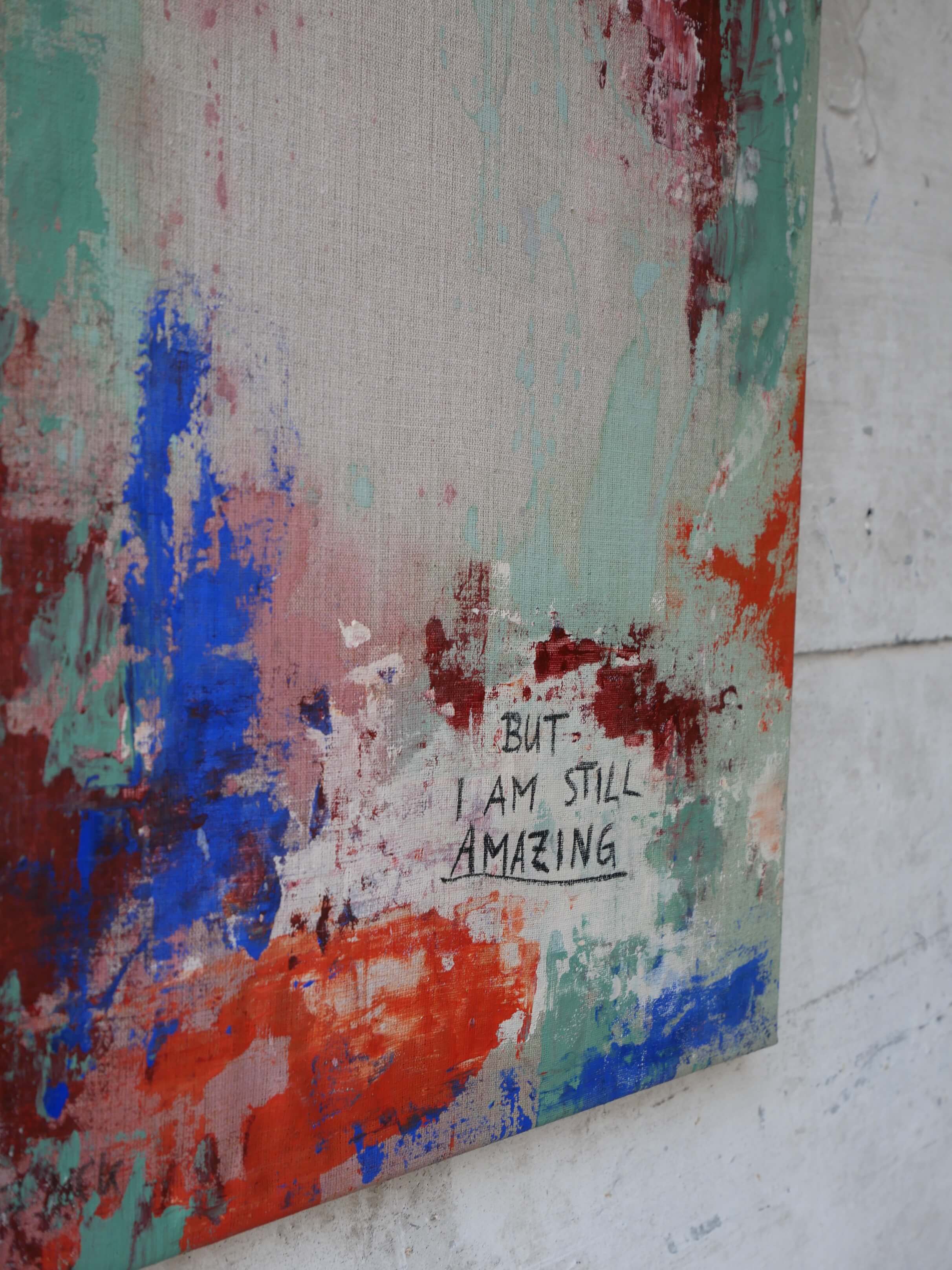 Im Kontrast dazu steht deutlich lesbar die Botschaft „BUT I AM STILL AMAZING“. Ein Reminder, der uns unmissverständlich an die eigene Stärke erinnert. Eine Aufforderung, uns trotz – oder vielleicht gerade wegen – unseres vermeintlich emotionalen Chaos zu lieben, unseren Selbstwert zu kennen, ihn zu schätzen und für uns einzustehen. Ein Statement das verdeutlicht: Wir sind mehr als unsere Ängste und Unsicherheiten.